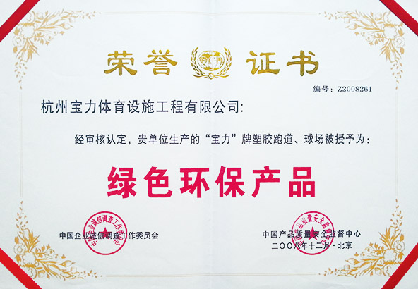 寶力體育公司塑膠跑道嚴格按照新國標GB63246-2018文件及上海市團體標準T/310101002-C003-2016檢測,總揮發性有機化合物釋放速率(TVOC)、苯、甲苯和二甲苯總和、 游離甲苯二異氰酸酯(TDI)、可溶性鉛、可溶性鎘、可溶性鉻、可溶性汞所有指標符合標準要求,安全、環保。