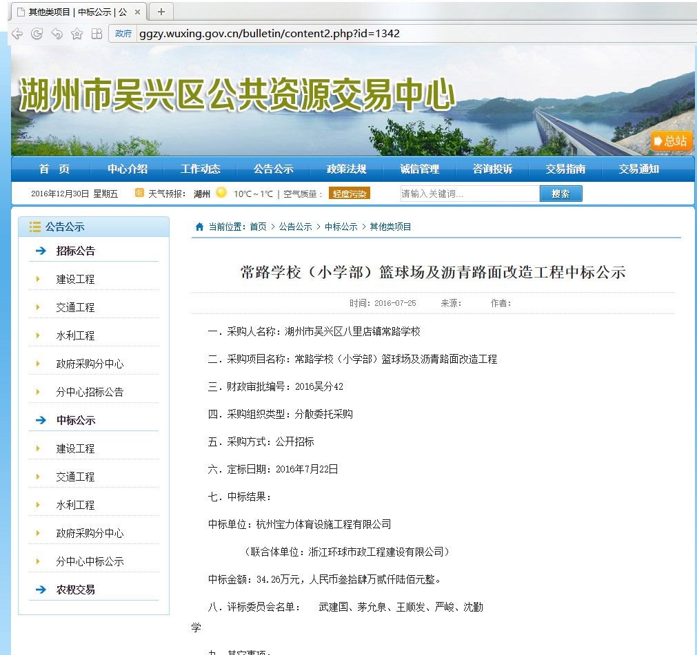 2017年7月10日中標溫州市第二中學塑膠操場翻修公告
