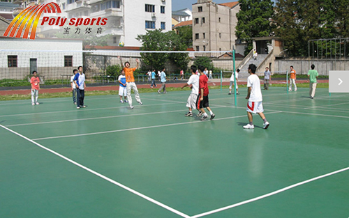 3、排球場(chǎng)建設(shè)施工完畢后請(qǐng)立即封閉現(xiàn)場(chǎng),5小時(shí)內(nèi)禁止行走,10小時(shí)內(nèi)避免重物撞擊,24小時(shí)后可進(jìn)行塑膠地板的鋪設(shè)。